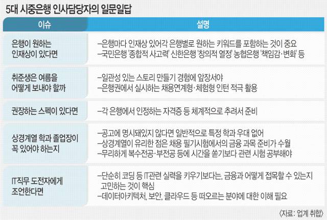 모든 인사 담당자는 은행마다 각기 원하는 인재상이 다른 점에 주목해 전략을 짜야 한다고 입을 모았다.