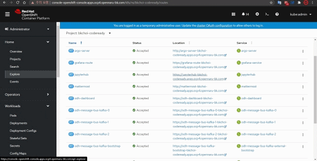 웹브라우저에서 레드햇 오픈시프트 컨테이너 플랫폼 콘솔에 접속한다. 관리자 메뉴에서 오퍼레이터의 '오퍼레이터 허브'로 들어간다. 오퍼레이터허브는 레드햇, 파트너, 커뮤니티 등에서 사전에 구축해놓은 프로젝트 패키지다. 머신러닝, 애플리케이션 런타임, 빅데이터, 데이터베이스 등 다양한 분야에서 원하는 아이템을 찾아 선택하면 된다.