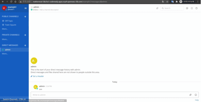 대표적인 오픈소스 메신저 '매터모스트'를 레드햇 오픈시프트로 구축하면 몇 분 만에 프로젝트 전용 메신저를 운영할 수 있다.