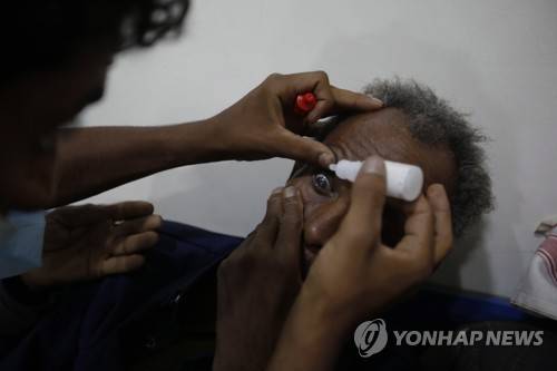 epa09326199 A Yemeni affected by an eye disease gets treatment during a voluntary anti-blindness campaign, at a health center in Sana'a, Yemen, 06 July 2021. Nebras Health Society, a local agency for blindness prevention, has launched one of its voluntary anti-blindness campaigns in Sana'a to combat blindness and diseases that cause it, targeting more than 3,500 vulnerable people who are suffering from eye diseases, especially cataract disease. Nearly 350 patients will undergo cataract surgeries during the five-day campaign. Over 120,000 Yemenis infect yearly with eye diseases, most of them do not receive healthcare because of poverty and the collapse of war-torn Yemen's healthcare system. EPA/YAHYA ARHAB