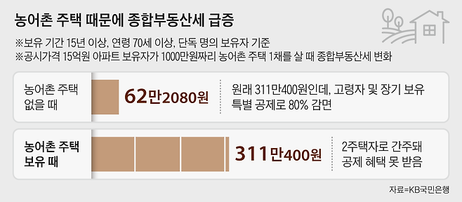 상속 등으로 농어촌 주택을 갖게 된 2주택자들 사이에 “농어촌 주택 때문에 종부세 폭탄을 맞는다”는 지적이 나오고 있다. A씨 경우처럼 농어촌 주택을 보유하고 있다는 이유로 2주택자로 간주돼 세금을 더 많이 내야 하기 때문이다.
