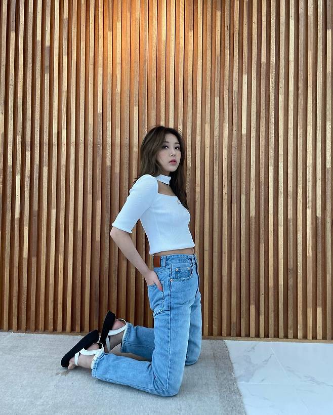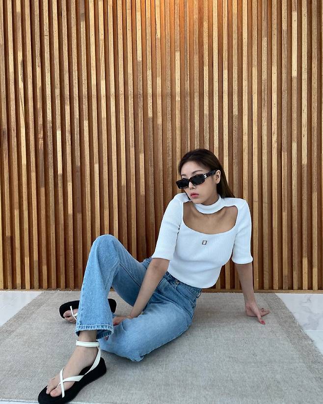 공개된 사진 속 유빈은 청바지를 입고 가슴 부분이 뻥 뚫린 파격적인 스타일을 공개했다. 특히 선글라스를 썼음에도 여전히 아름다운 미모가 시선을 모았다.
