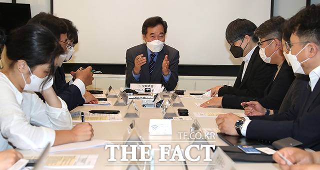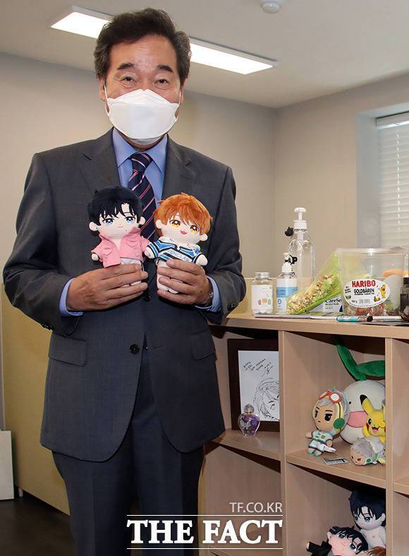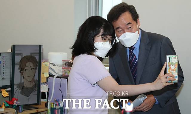[더팩트ㅣ국회사진취재단] 이낙연 더불어민주당 전 대표가 8일 오전 서울 마포구 서교동 키다리 스튜디오에서 열린 '웹툰·웹소설 업계 현장 간담회'에 앞서 봄툰 공작소를 둘러보고 있다.