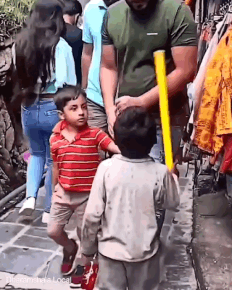 노란 막대기를 들고 어른들에게 '삿대질'을 하는 인도 어린이 영상에 눈길이 쏠리고 있습니다.