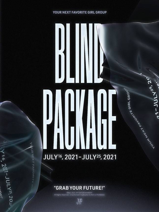 이어 9일 0시에는 ’JYPn‘ 채널을 통해 세련된 무드의 포스터를 추가 공개하고 ’블라인드 패키지‘를 소개했다. ’블라인드 패키지‘는 “GRAB YOUR FUTURE(미래를 쟁취하라)”라는 슬로건 아래 7월 16일부터 25일까지 단 열흘간 판매하는 신인 걸그룹 데뷔 싱글의 실물 한정반이다. 예약 판매 기간에만 구입 가능하며 사전 판매 기간이 지난 후에는 제작 및 구입이 불가능하다. 신인 걸그룹의 어떤 정보도 공개하지 않은 상황 속 미지의 프로모션은 지금까지 수많은 걸그룹을 성공시켜온 JYP의 패기와 자신감 그리고 K팝의 새로운 장을 열겠다는 강한 의지를 내포하고 있다.