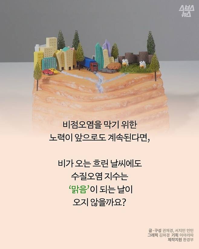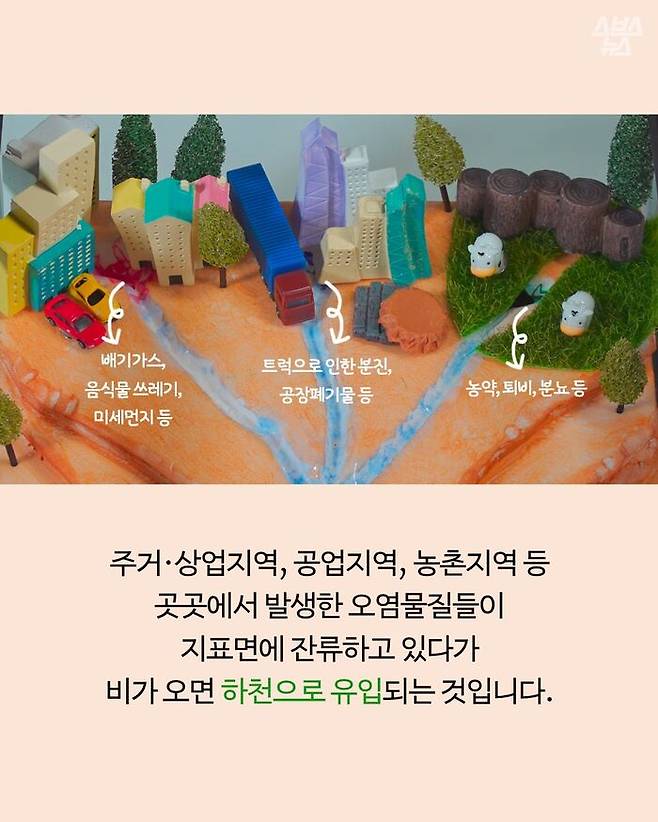 지표면에 있는 각종 오염물질이 비가 오면 하천으로 유입되기 때문입니다.