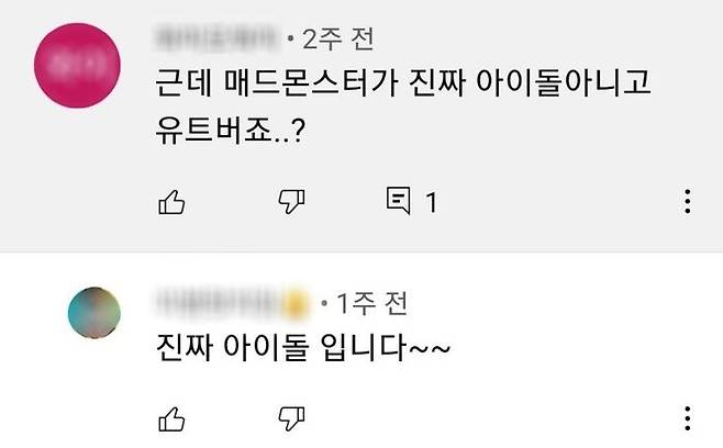 ▶ 매드몬스터 ‘내 루돌프’ MV 댓글 캡처 (유튜브 ‘빵송국’ 채널)