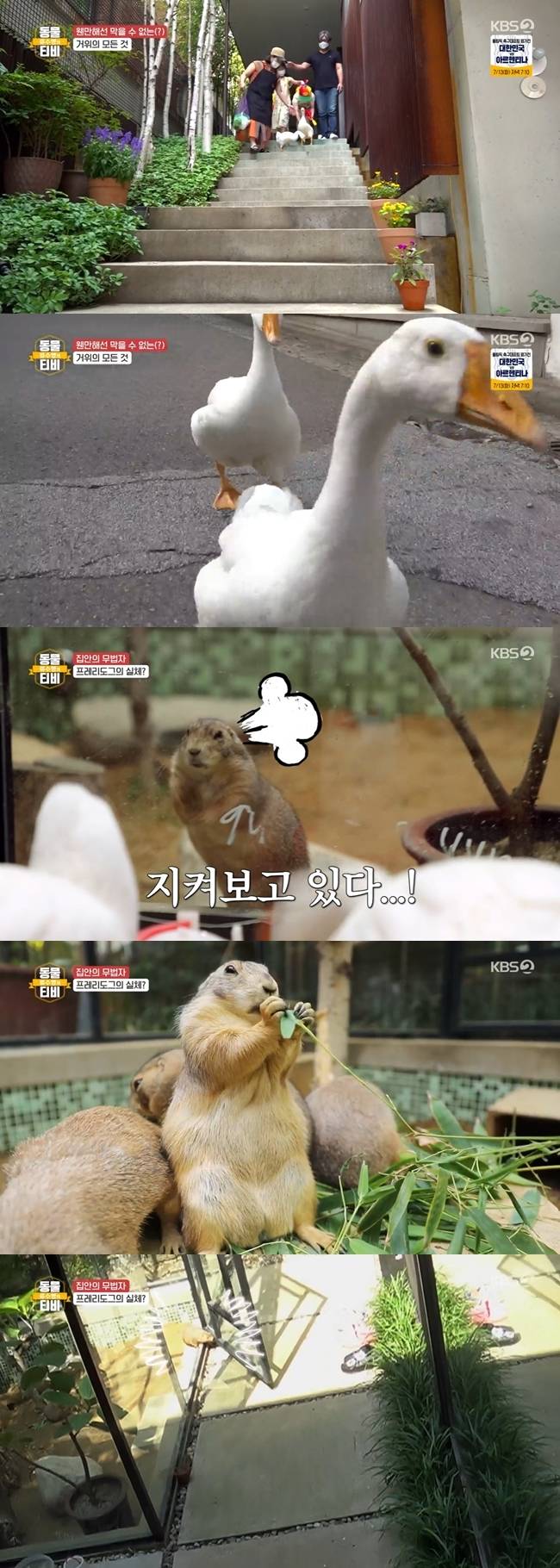 7월 10일 방송된 KBS 2TV '류수영의 동물티비'에는 한지붕 아래 가족이 된 거위 부부와 프레리도그 식구들 이야기가 소개됐다.
