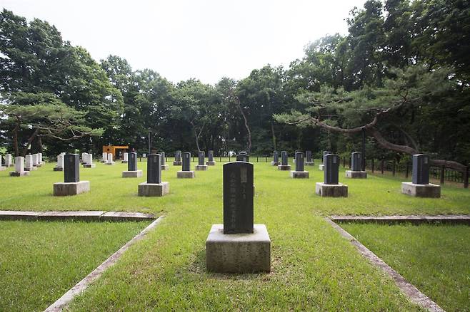 | ▲ 서삼릉 태실 서삼릉 태실은 22기의 오석비군과 32기의 화강석비군으로 나뉘어 있다. 오석비군은 왕과 왕세자의 태실비(태비)이고 화강석비는 왕자와 왕녀의 태비이다. 조선 태조, 세종 대왕 등의 태실도 이곳에 봉안되어 있다. |