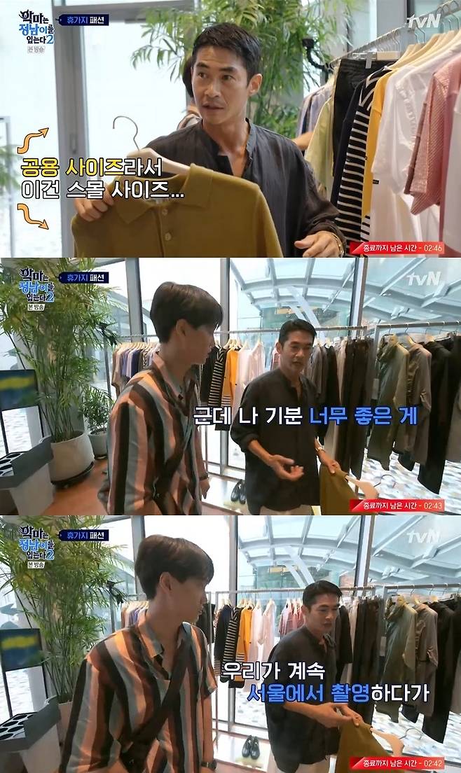 배정남은 "사이즈 왜 이렇게 작냐"고 질문했고 종업원은 "공용 사이즈라서 스몰 사이즈다"고 대답했다.
