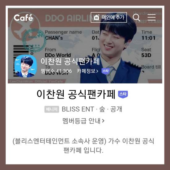 공식 팬카페 1주년을 맞아, 이찬원도 팬카페에 감사의 글을 남기기도 했다.
