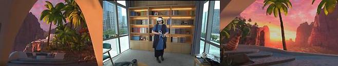안교수는 직접 체험해볼 것은 제안하면서 최신 가상현실 헤드셋을 머리에 씌워줬습니다.