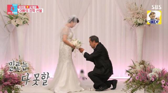 이지혜 문재완은 45년 만의 부모님 첫 결혼식을 준비했다. 이지혜는 "아빠의 마지막 사랑"이라며 어머니의 웨딩드레스 자태를 공개했다. 아버지는 손가락 하트와 함께 어머니를 반겼고 얼굴을 마주하자 차마 말을 잇지 못하고 울컥했다.