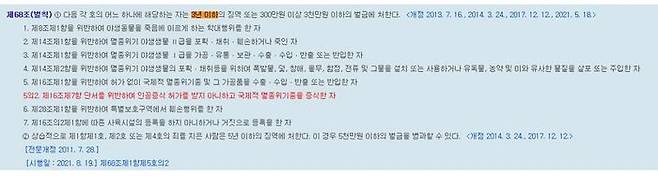 개정된 야생생물보호법이 지난 5월 시행됐습니다. 68조 벌칙 조항이 강화됐습니다. 3년 이하 징역, 3천만 원 이하 벌금으로 바뀌었습니다. 전에는 1년 이하 징역, 1천만 원 이하 벌금이었습니다. 또 조항이 새로 생겨 곰 같은 국제종 멸종위기종을 허가 없이 불법 증식하면 처벌받을 수 있도록 했습니다. 조금이나마 사육 곰과 관련된 위법 사항을 보다 강력히 처벌할 수 있게 됐습니다.
