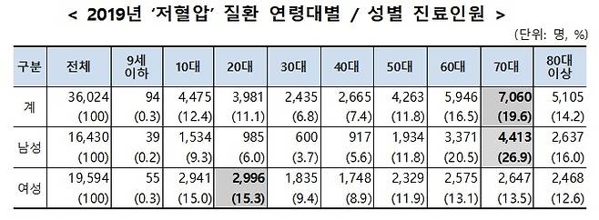 lsquo;저혈압(I95)’으로 진료를 받은 환자 수가 매년 늘고 있는 가운데 20‧30대의 젊은 연령층에서도 환자 수가 증가하고 있다.