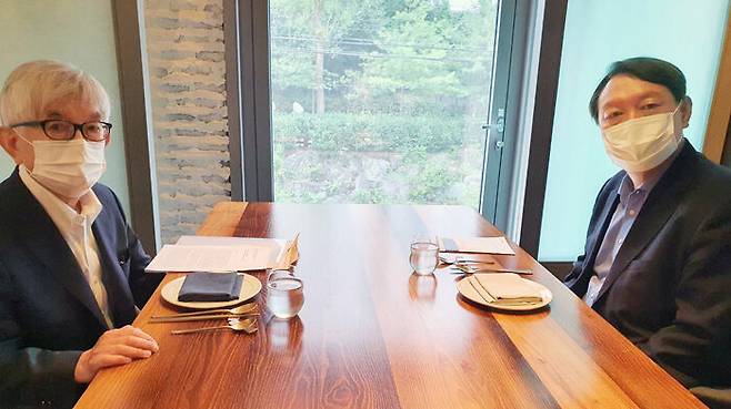 윤석열 전 검찰총장은 지난 12일 서울 시내 한 음식점에서 최장집 고려대 명예교수와 만나 민주주의 위기에 대한 진단과 해법을 주제로 대화했다고 밝혔습니다.