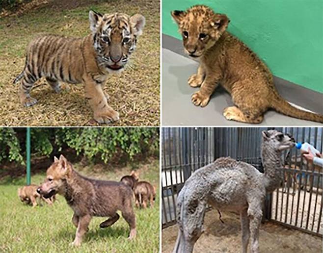 공개된 동물은 생후 50일 된 백두산 호랑이와 낙타, 30일 된 사자, 70일 된 한국늑대 등 7마리입니다.