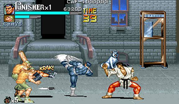 꿀딴지곰 : 역시 마블코믹스 원작인 북미 코믹스 퍼니셔 세계관을 기반으로 제작한 게임으로 캡콤의 숱한 벨트스크롤 액션중에서도 세손가락 안에 들어가는 경파하고 묵직한 타격감으로 유명한 퍼니셔 입니다.