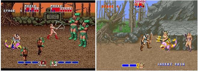 조기자 : 세가의 '베어너클' 시리즈와 함께 가장 유명한 벨트 스크롤 액션 게임이 아닐까 생각합니다. 마법약을 주는 요정들, 그리고 탈 것, 죽을 때 몹들의 인상적인 비명소리 등 여러모로 시대를 개척한 실험적인 게임이 아닌가 생각해요. '수왕기'나 이 '황금도끼' 같은, 딱 이 시절의 액션 게임들을 참 좋아합니다.