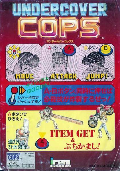 꿀딴지곰 : '언더커버캅스'는 1992년도에 아이렘에서 제작한 오락실용 벨트스크롤 액션게임입니다. 전반적인 분위기는 북두의권 같은 세기말 분위기에 아이렘에 제작한 다른게임들과 세계관을 공유하고 있죠.