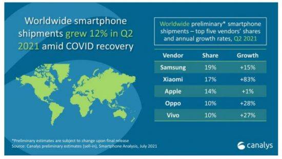 15일(현지시간) 시장조사업체 캐널리스에 따르면 2분기 글로벌 스마트폰 출하 규모는 백신 접종 확산 등으로 전년 동기 대비 12% 증가했다.