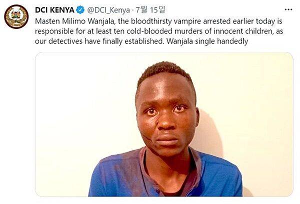 케냐에서 수년간 어린이들을 납치해 살해하고, 피를 빨아먹는 등 잔인한 행태를 보인 20살 남성이 경찰에 붙잡혔습니다.