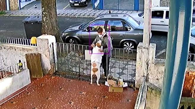 놀란 주인, CCTV로 확인을 해봤는데 낮은 담 너머로 한 남성이 개를 쓰다듬으면서 놀아주는 것 같았는데 보시죠, 슬슬 옷을 벗기기 시작합니다.