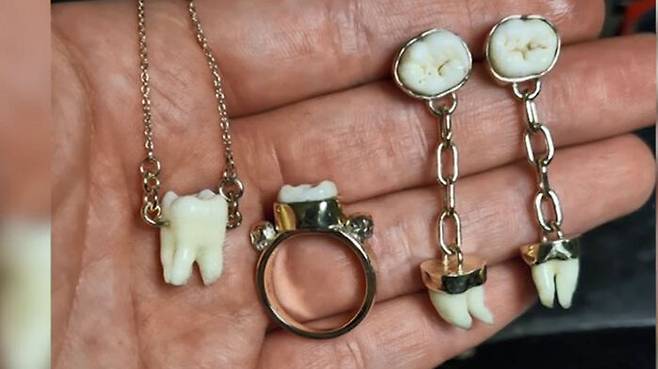 호주의 보석 디자이너 윌리엄스가 유가족의 주문에 따라 고인의 치아로 만든 장신구입니다.