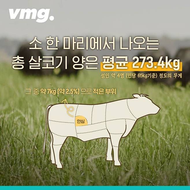 소고기 안심은 소 한 마리에서 가장 적게 나오는 귀한 부위입니다. 지방 함량이 낮고 단백질을 많이 갖고 있어 식감도 좋을 뿐 아니라 아연, 철분 등의 영양소도 풍부해 건강을 챙길 수 있습니다.