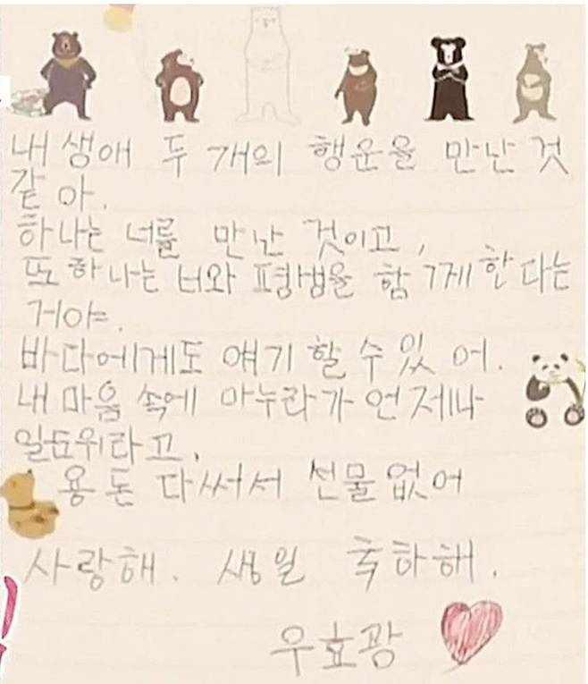 16일 더쿠 등 연예 커뮤니티 사이트에는 과거 우효광이 작성했던 손편지 에피소드가 올라와 화제를 모으고 있다. 이 편지는 지난 2018년 3월 방송한 SBS '동상이몽'에서 나왔던 편지였다.