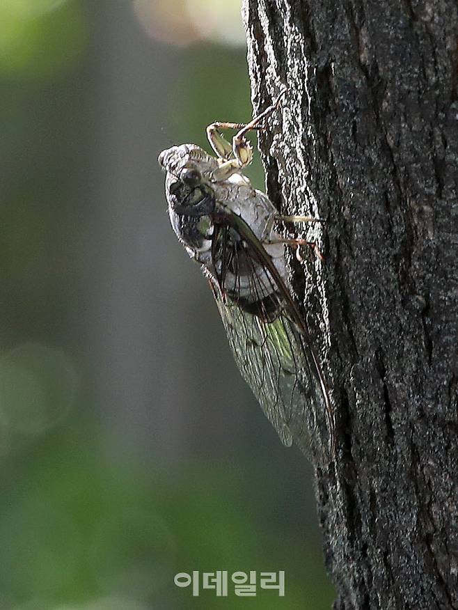 [이데일리 방인권 기자] 무더운 날씨를 보인 18일 서울 마포구 연남동 경의선숲길공원 나무에서 매미가 울고 있다.