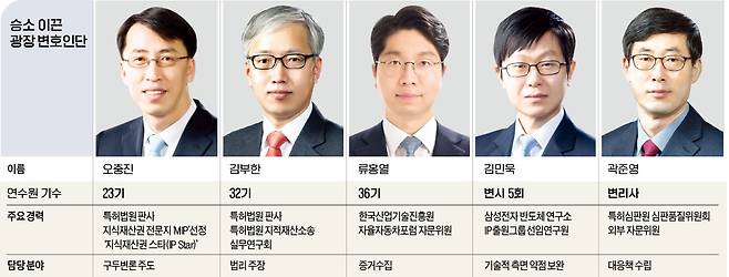 특허법원 판사 출신인 오충진·김부한 변호사, 특허 실무 전문가인 류홍열 변호사, 변리사 자격증이 있는 김민욱 변호사, 특허심판원 출신인 곽준영 변리사 등이 팀을 꾸려 사건을 맡았다. 오 변호사는 해당 사건을 총괄하며 법원 및 특허심판원에서 구두변론을 주도했다. 김부한 변호사는 “두원공조의 제품은 한온시스템의 특허를 침해한 것이 아니라 이전에도 쓰이던 기술”이라는 법리를 폈다.