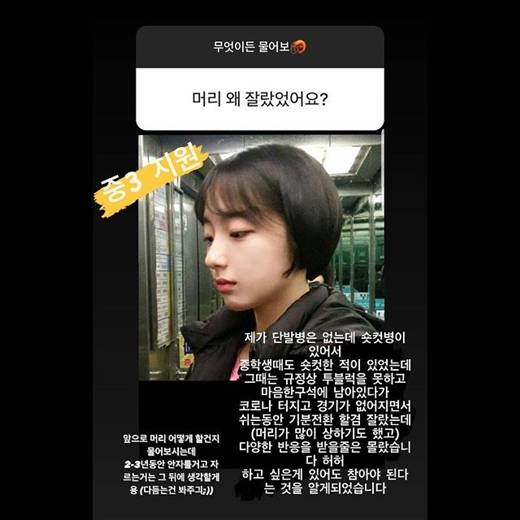 첫째로 제가 숏컷을 한 이유는 잦은 염색으로 인한 머릿결 손상과 젠더 갈등이 심화되기 전부터 해보고 싶었던 숏컷을 스포츠 경기 공백기 때 시도한 것입니다.