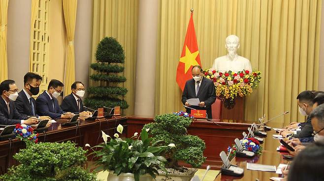 복수의 현지 소식통에 따르면 SK 관계자는 지난 15일 오후 응우옌 쑤언 푹 국가주석이 주재한 한국 기업인들과의 간담회에서 내년 1분기 SK바이오사이언스 공장에서 자체 개발한 백신이 생산되면 우선적으로 베트남에 제공할 수 있도록 협상을 진행하겠다고 밝혔습니다.
