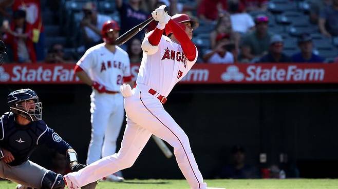 오타니는 미국 캘리포니아주 애너하임의 에인절 스타디움에서 열린 시애틀 매리너스와 홈경기에서 후반기 첫 대포를 쏘아 올렸습니다.