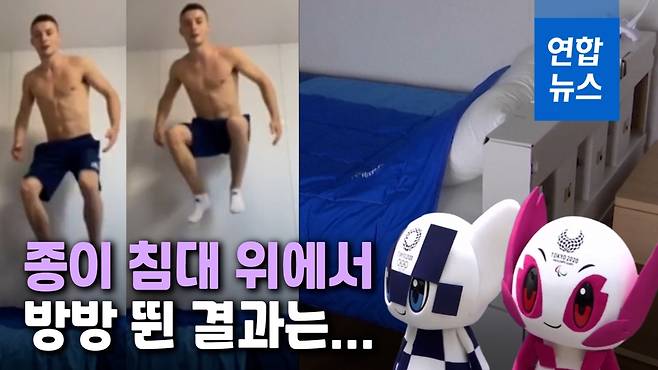 (서울=연합뉴스) 도쿄올림픽 선수촌 골판지 침대의 내구성에 대한 우려가 끊임없이 제기되는 가운데 직접 실험에 나선 선수가 있습니다.