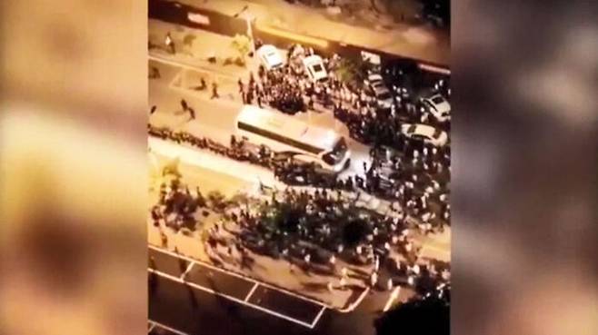 깜깜한 밤, 아파트 단지 내에 셀 수 없이 많은 사람이 모였습니다.