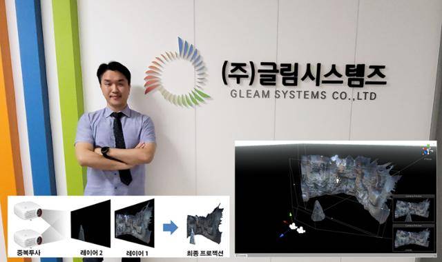 글림시스템즈는 시뮬레이션 및 각종 전시영상 구현에 있어 필수적인 빔 프로젝션 맵핑(빔프로젝터를 이용한 영상정합) 분야에서 불규칙하고 비정형화된 투사면에 시각적으로 왜곡되지 않게 영상을 투영하는 ‘비정형 다층구조 빔프로젝션 콘텐츠 전시를 위한 삼차원 스캐닝 시스템을 이용한 프로젝션 방법’에 관한 특허기술을 개발했다