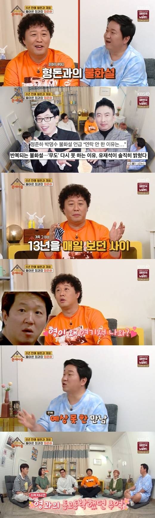 이날 정준하는 MBC '무한도전' 이후 6년 만에 정형돈과 재회했다고 밝혀 눈길을 끌었다. 그는 "얼마 전 라디오에서 정형돈과 만났다. 저를 보자마자 얘가 막 울더라"라고 이야기를 꺼냈다.