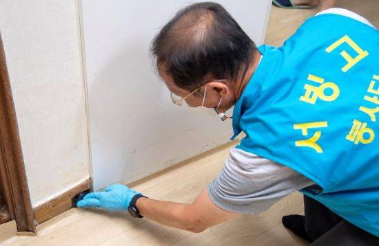 이 중 상태가 심각한 20세대를 선정, 전문 방역업체(올바른 환경)와 서빙고동 직원, 새마을지도자회가 19~20일 방역 봉사를 진행했다. 바퀴벌레 제거약 등 방역 물품도 전달했다.