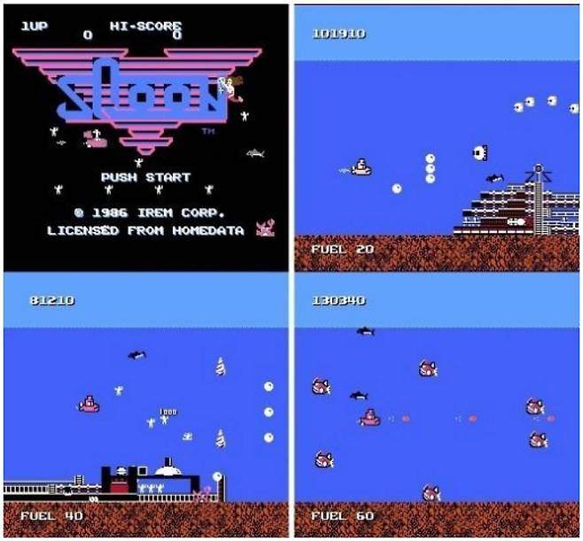 꿀딴지곰 : 첫 시작은 가볍게. 패미콤 게임으로 해보죠. 홈데이터에서 개발하고 아이렘에서 발매한 독특한 잠수함 해저슈팅 스쿤입니다. 패미콤 오리지날 작품이면서도 상당한 완성도와 재미를 보장하는 수작 슈팅게임으로 특이하게도 수중을 배경으로 하고 있습니다. 외계인이 지구의 해수면을 상승시켜서 사람들이 해저에 갇히게 되었고 이를 구조해야 하는 임무 또한 맡고 있습니다.