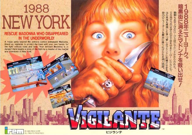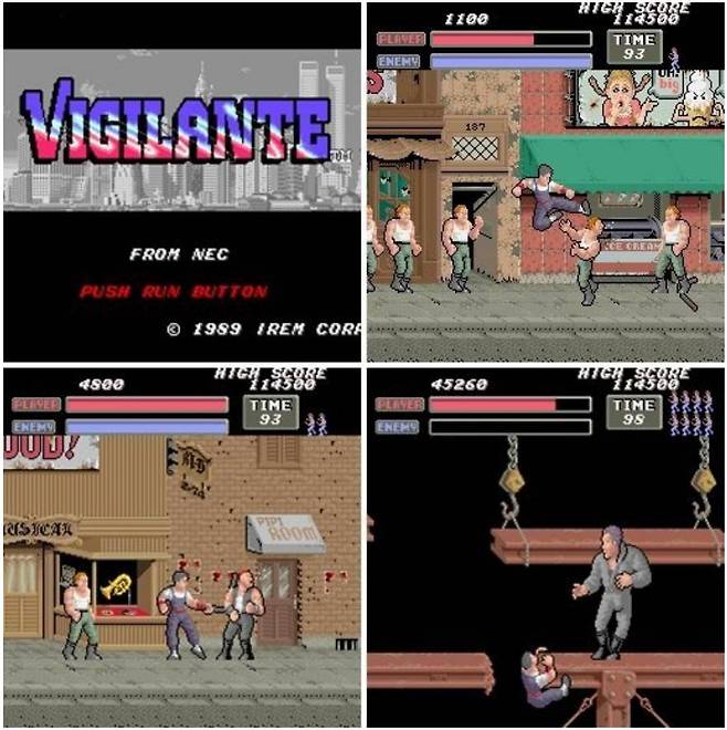 꿀딴지곰 : 아이렘에서 만든, '스파르탄X'의 후속작이라고 할수 있는 횡스크롤 타격 액션게임 '비질란테' 입니다. 전체적인 시스템은 '스파르탄X'와 동일한데 다만 스테이지 구성이 탑을 올라가는 게 아니라 다양한 스테이지가 등장합니다.
