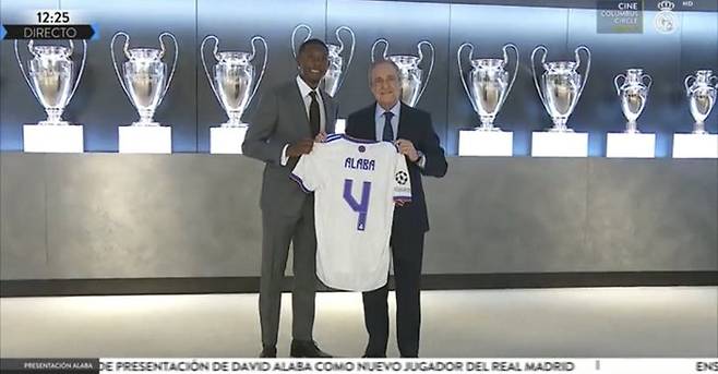 레알은 21일(한국시간) 공식 TV 채널을 통해 알라바의 입단을 환영하는 행사를 진행했다. 그리고 여기서 알라바는 플로렌티노 페레스 회장과 등번호 4번이 새겨진 유니폼을 입고 기념사진을 촬영했다.