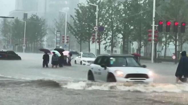 어제(20일) 오후 중국 중부 허난성의 성도인 정저우시에 시간당 201mm의 폭우가 쏟아졌습니다.