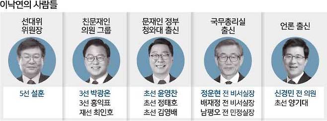 이 후보와 같은 기자 출신인 박광온·윤영찬 의원 외에도 신경민 전 의원, 양기대 의원 등 언론계 출신들도 캠프 중책을 맡고 있다. 신 전 의원은 선대위 상임부위원장, 양 의원은 총괄부본부장에 임명됐다.