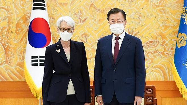 문 대통령, 셔먼 미 국무부 부장관 접견.."북미 대화 재개 노력 당부"