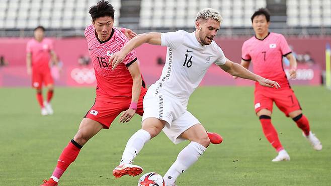 22일 이바라키 가시마 스타디움에서 열린 도쿄올림픽 남자축구 조별리그 B조 1차전 대한민국 대 뉴질랜드 경기.