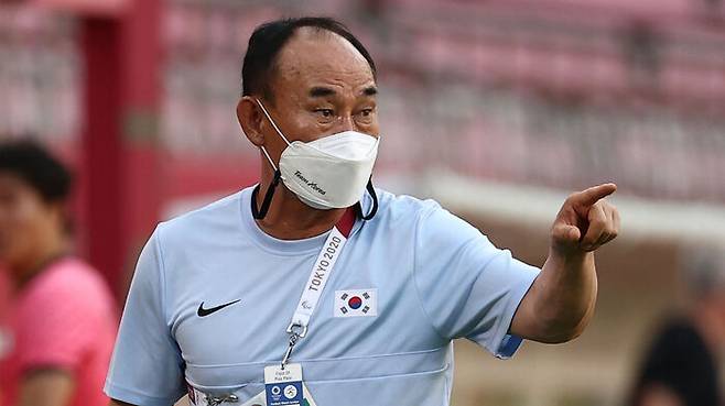김학범 감독이 작전 지시하고 있다.