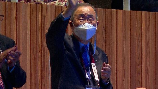 우리 선수단이 입장하자 국제올림픽위원회(IOC) 윤리위원장에 재선한 반기문 전 유엔 사무총장이 자리에서 일어나 손을 흔들어 환영하기도 했습니다.