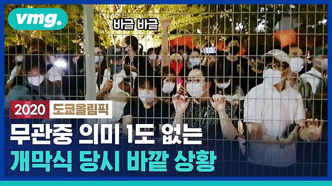 2020 도쿄올림픽 개막식이 어제(23일) 열렸습니다. 무관중 원칙에 개막식 현장에는 일부 취재진만 입장이 가능했는데요. 개막식이 열린 경기장 외부에는 그렇게라도 가까이에서 올림픽 분위기를 느끼려는 시민들이 경기장 담에 다닥다닥 붙어 대화를 나누며 휴대폰으로 중계를 보는 진풍경도 보였습니다. 거리두기가 지켜졌을지는 의문입니다.